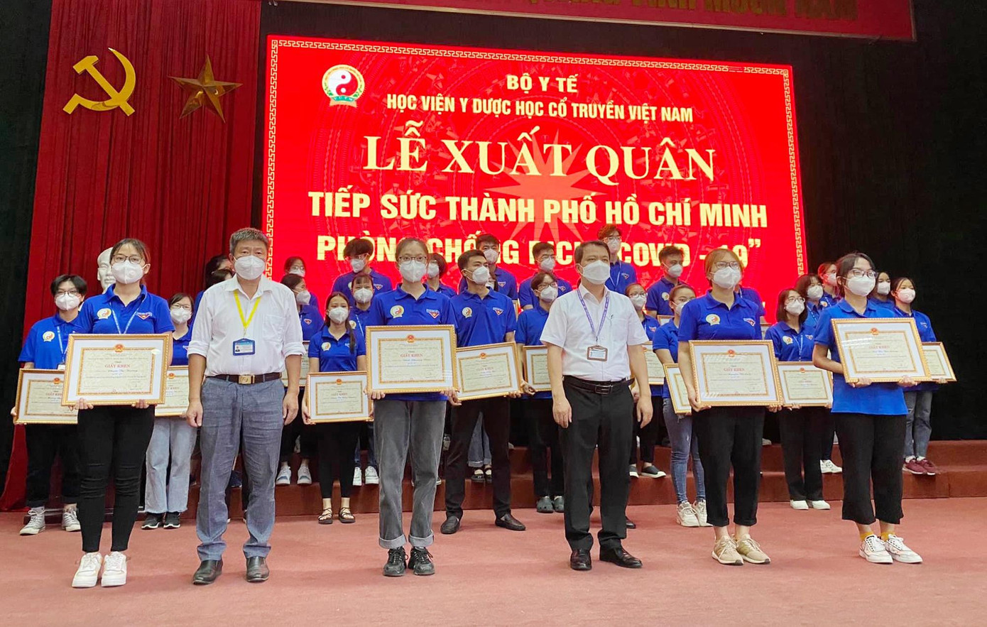 Trước tình hình diễn biến phức tạp của dịch bệnh COVID-19 tại TP. Hồ Chí Minh, sáng ngày 21/7, 12 bác sĩ và 238 sinh viên Học viện Y Dược học cổ truyền Việt Nam ra quân đội hình tình nguyện tham gia phòng chống dịch tại TP. Hồ Chí Minh.