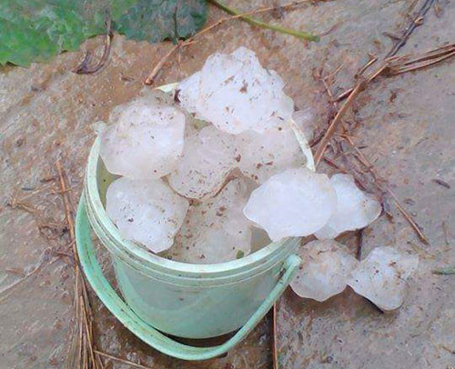 Sáng 3/4, trận mưa đá bất ngờ rơi xuống nhiều khu vực ở Tuyên Quang. Những viên đá đường kính 4-8 cm làm thủng mái nhà dân, vỡ gương xe máy, kính ôtô, khiến nhiều người đi đường hoảng sợ vội tìm chỗ trú.
