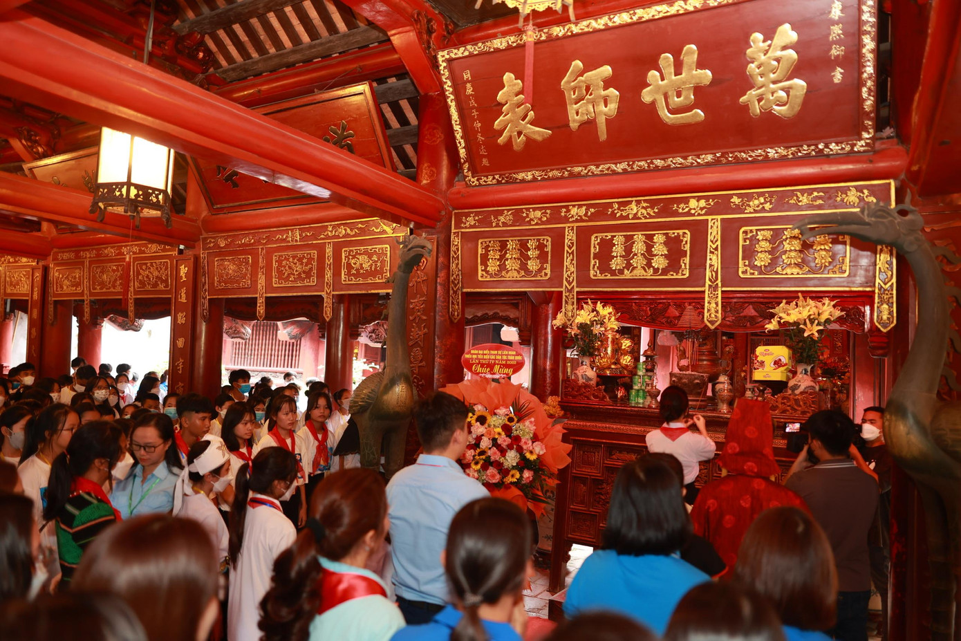| Các đại biểu dâng hương tại Văn Miếu Quốc Tử Giám. (Ảnh: Như Ý) |