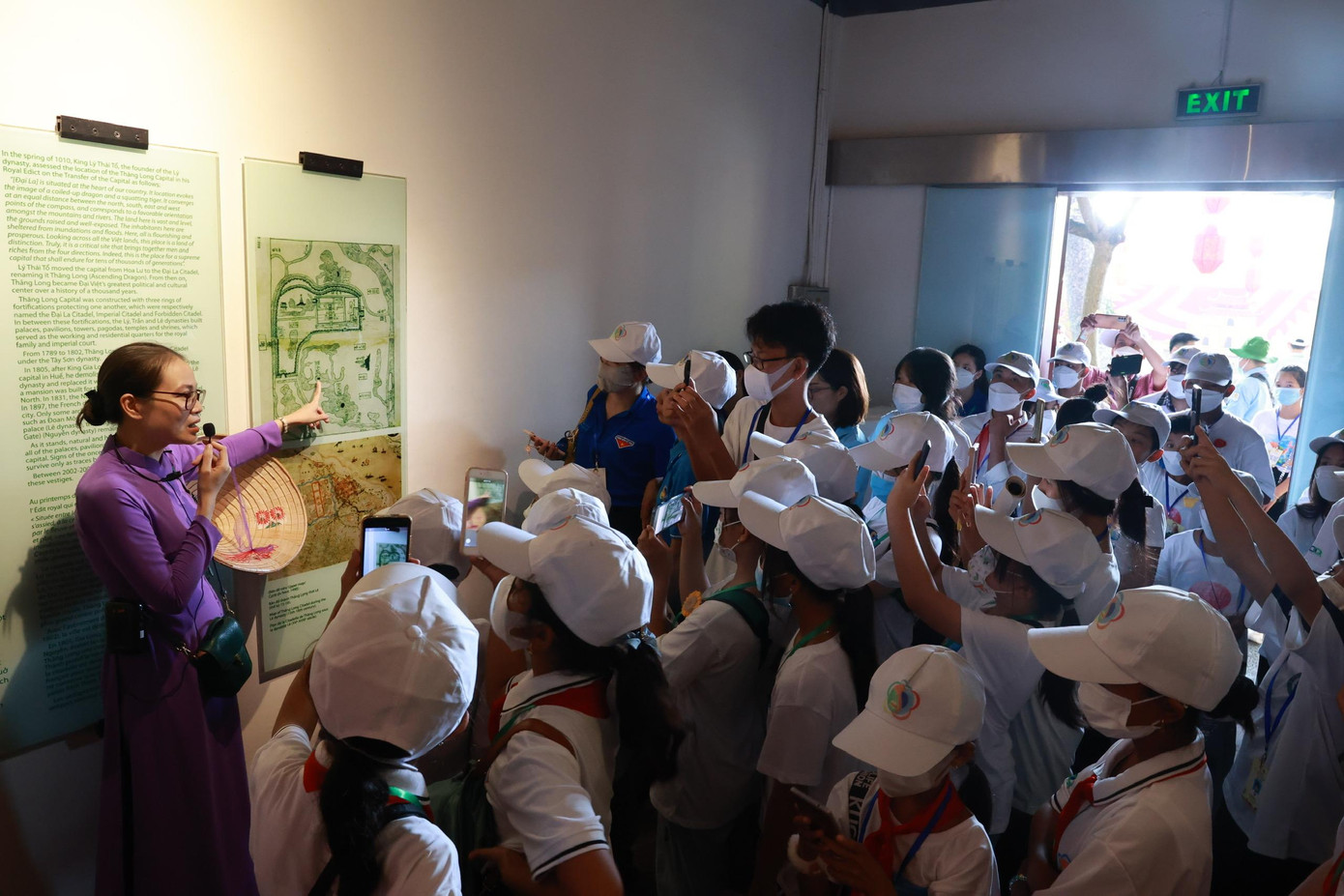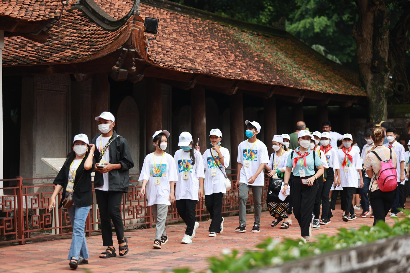 | Các đại biểu thiếu nhi tham quan Văn miếu Quốc tử Giám. (Ảnh: Như Ý) |