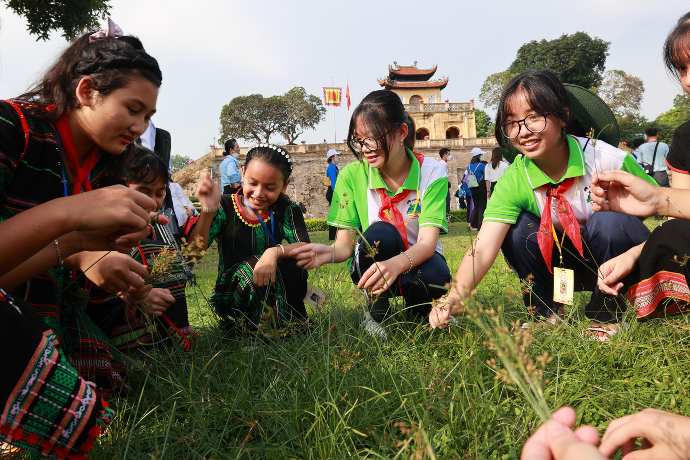 | Các đại biểu thiếu nhi dân tộc vui chơi tại Hoàng Thành Thăng Long. (Ảnh: Như Ý) |