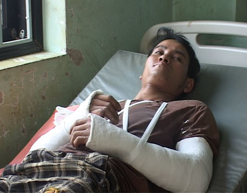 Trong đó, anh Lợi bị chấn thương nặng nhất: gãy hai tay, đa chấn thương toàn thân, chấn thương đầu với vết thương dài gần 5 cm...