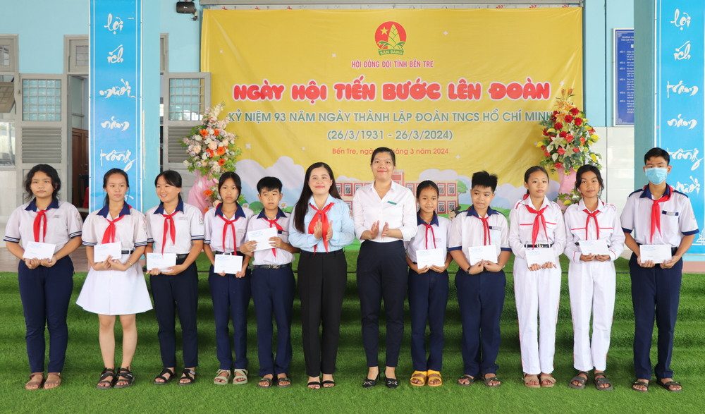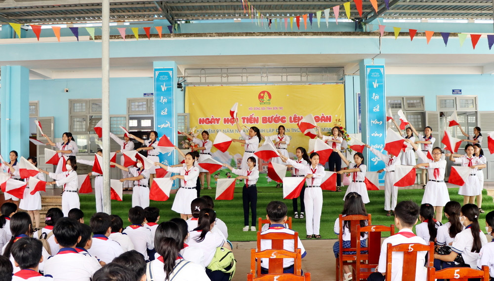 Sáng 25/3, Hội đồng Đội tỉnh Bến Tre tổ chức Ngày hội Tiến bước lên Đoàn tại trường THCS Tân Lợi Thạnh, huyện Giồng Trôm. Đây là hoạt động được Ban Thường vụ Tỉnh đoàn, Hội đồng Đội tỉnh chọn làm điểm cấp tỉnh nhằm hưởng ứng 7 tuần thi đua cao điểm của Thiếu nhi Việt Nam chào mừng kỷ niệm 70 năm chiến thắng Điện Biên Phủ (18/3/2024 - 7/5/2024) và chào mừng kỷ niệm 93 năm ngày thành lập Đoàn TNCS Hồ Chí Minh (26/3/1931 - 26/3/2024).