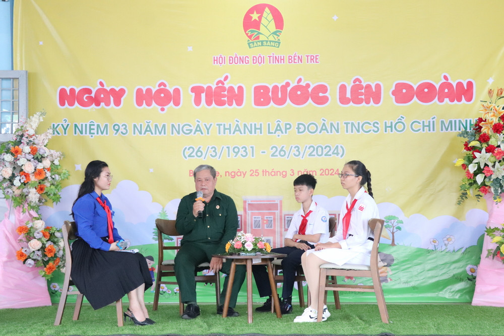 Trong chương trình, các bạn đội viên, thiếu nhi, học sinh trên địa bàn tỉnh đã có dịp giao lưu với các diễn giả gồm: Chú Võ Ngươn Thành - Trưởng ban Phong trào, Hội Cựu Chiến binh tỉnh; bạn Võ Thị Kim Duyên - Liên đội trưởng Liên đội THCS Tân Lợi Thạnh, Chỉ huy Đội giỏi cấp Trung ương; bạn Đào Khương Duy - đội viên chi đội 7/1, Liên đội THCS Huỳnh Tấn Phát (huyện Bình Đại), đạt giải nhất cuộc thi Viết thư quốc tế UPU Việt Nam năm 2023.