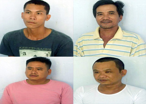 Nguyễn Phong Vũ (áo trắng) cùng các nghi can bị bắt giữ. Ảnh: C.A.