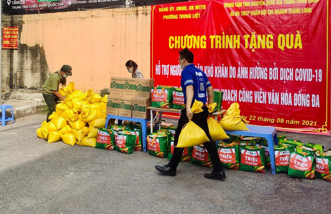 Ngày 22/8, Ban Tổ chức trao tặng 200 “Túi quà an sinh” cho người dân có hoàn cảnh khó khăn, bị ảnh hưởng nặng nề bởi đại dịch COVID-19 đang sinh sống trên địa bàn phường Trung Liệt, quận Đống Đa và địa bàn phường Ngọc Hà, quận Ba Đình, Hà Nội. Nhân dịp này, tại địa bàn phường Trung Liệt, bên cạnh những túi quà an sinh, chính quyền địa phương cũng trao 5 tạ gạo hỗ trợ 100 hộ gia đình có hoàn cảnh khó khăn trên địa bàn phường (5kg/hộ)...