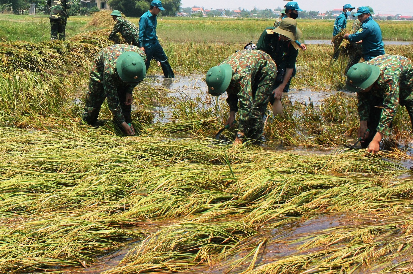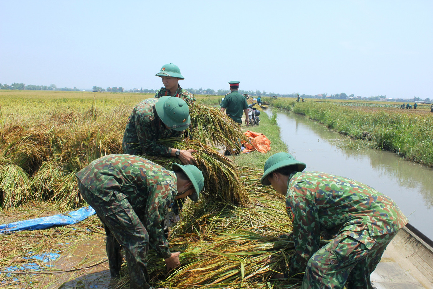 Từ phương châm “xanh nhà hơn già đồng” trong sản xuất nông nghiệp, Bộ Tư lệnh Quân khu 4 đã điều động trên 200 cán bộ, chiến sĩ thuộc Sư đoàn 968 và 500 cán bộ, chiến sĩ là bộ đội thường trực, lực lượng dân quân tự vệ tỉnh TT-Huế đồng loạt xuống đồng “sát cánh” cùng nhiều gia đình nông dân khẩn trương thu hoạch, thu gom, vận chuyển lúa chín về tận từng nhà, nhằm giảm thiệt hại cho bà con khi vừa trải qua đợt thiên tai khắc nghiệt.