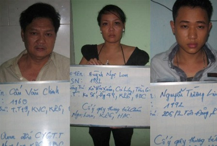 Các đối tượng bị bắt giữ gồm: Cấn Văn Tân (53 tuổi, ngụ quận Phú Nhuận); Nguyễn Trường Linh ("Linh MC", 22 tuổi, quê tỉnh Bình Định); Huỳnh Ngọc Lan (33 tuổi, quê tỉnh Tiền Giang, chủ quán nhậu há với nhau Ngọc Lan quán); Lê Thị Tuyết Mai (19 tuổi, quê tỉnh Đồng Tháp); Trần Minh Tâm (34 tuổi); Trần Tài Được (18 tuổi); Nguyễn Thành Trung (32 tuổi, cùng ngụ Thủ Đức); Nguyễn Văn Hải (21 tuổi, quê Kiên Giang); Phạm Văn Hoài Thanh (27 tuổi); Nguyễn Văn Yên (27 tuổi); Huỳnh Ngọc Minh (38 tuổi) và Cấn Văn Chinh (54 tuổi, cùng quê tỉnh Tiền Giang).