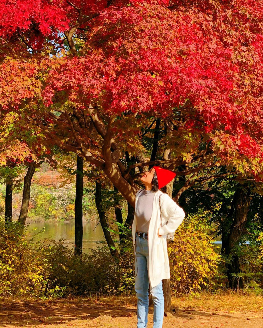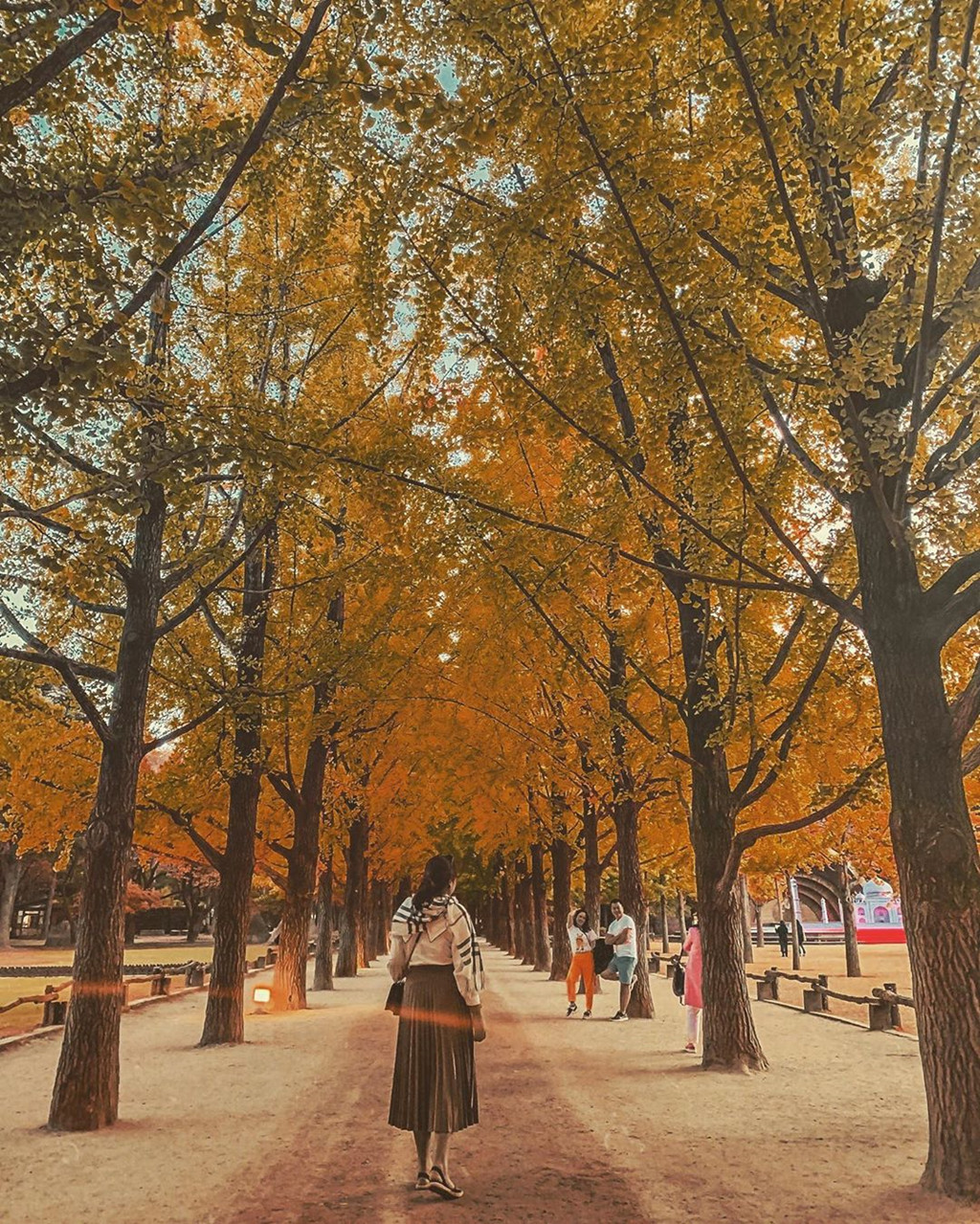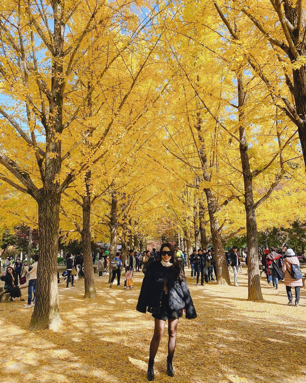Giới trẻ Việt cũng rần rần kéo nhau tới Nami để kịp check-in những bức ảnh sống ảo sớm nhất về mùa thu Hàn Quốc. Khung cảnh thiên nhiên dần chuyển sắc lá đỏ, vàng bao phủ khắp nơi. Hàng cây ngân hạnh nổi tiếng trong các tấm hình check-in trên mạng đã kịp thay màu vàng rực. Cây phong cũng rực lửa bởi lá đỏ.