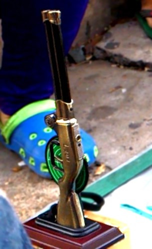 Ngoài lựu đạn, nhiều bật lửa hình súng ru lô, súng giả cổ, viên đạn lớn có giá bán từ 150.000 – 1.000.000 đồng.Bật lửa hình khẩu súng ru lô này có giá 700.000 đồng.