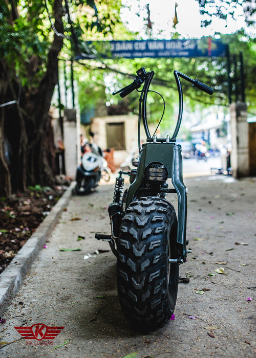Phần khung của King Kong thiết kế lại. Xưởng độ sử dụng cặp vành đúc, gắp sau lấy từ Suzuki FX, ghi đông làm thủ công.