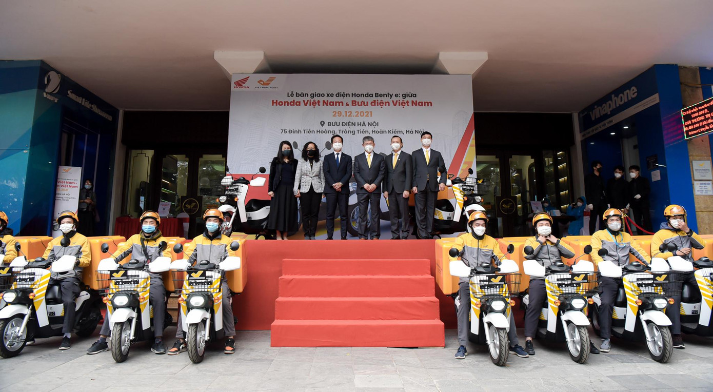 Lễ ký kết giữa hai bên vừa được tổ chức hôm nay 29/12/2021. Theo Honda Việt Nam, với mục tiêu tìm ra các giải pháp mới ứng dụng phương tiện xe điện trong việc di chuyển hàng ngày và chung tay hướng đến bảo vệ môi trường sống xanh sạch, từ ngày 1/1/2022, HVN kết hợp cùng Bưu điện Việt Nam tổ chức cho lực lượng bưu tá, nhân viên giao hàng đi phát thư báo, bưu phẩm trên địa bàn thành phố Hà Nội bằng xe điện Honda Benly e:.