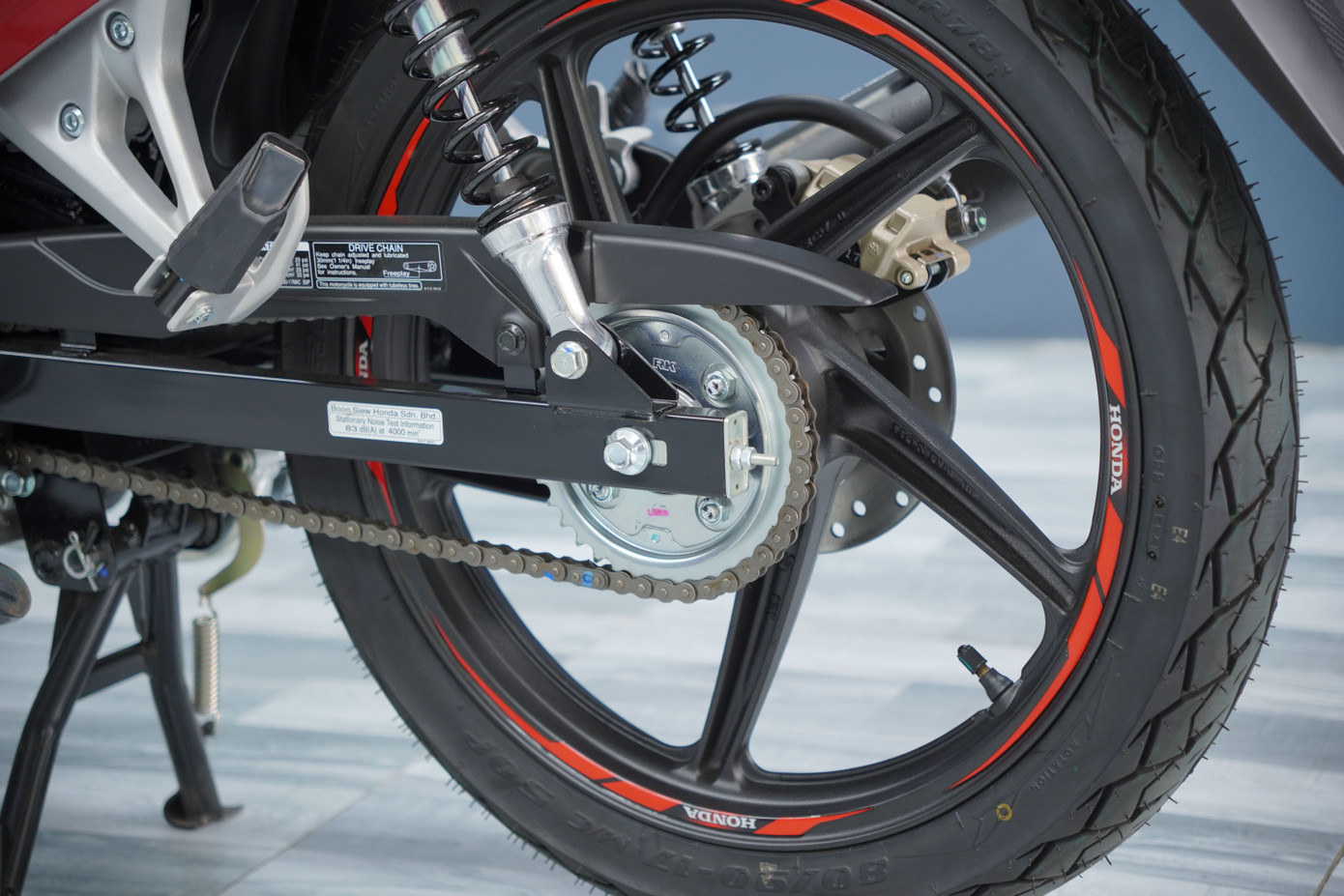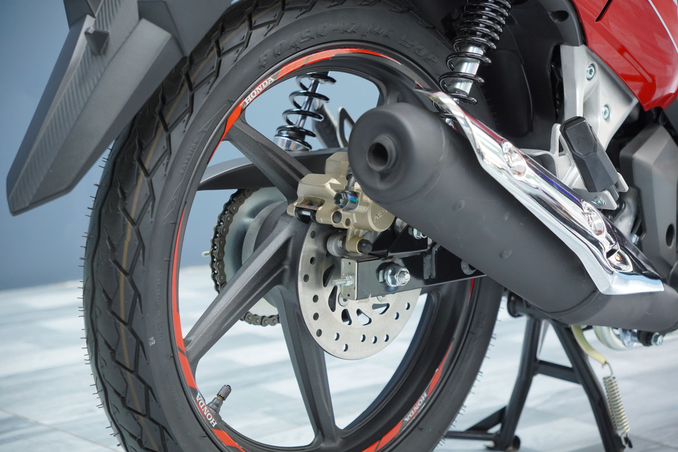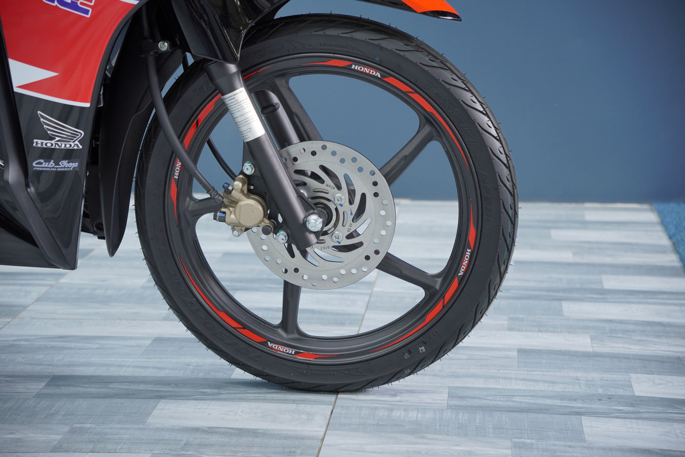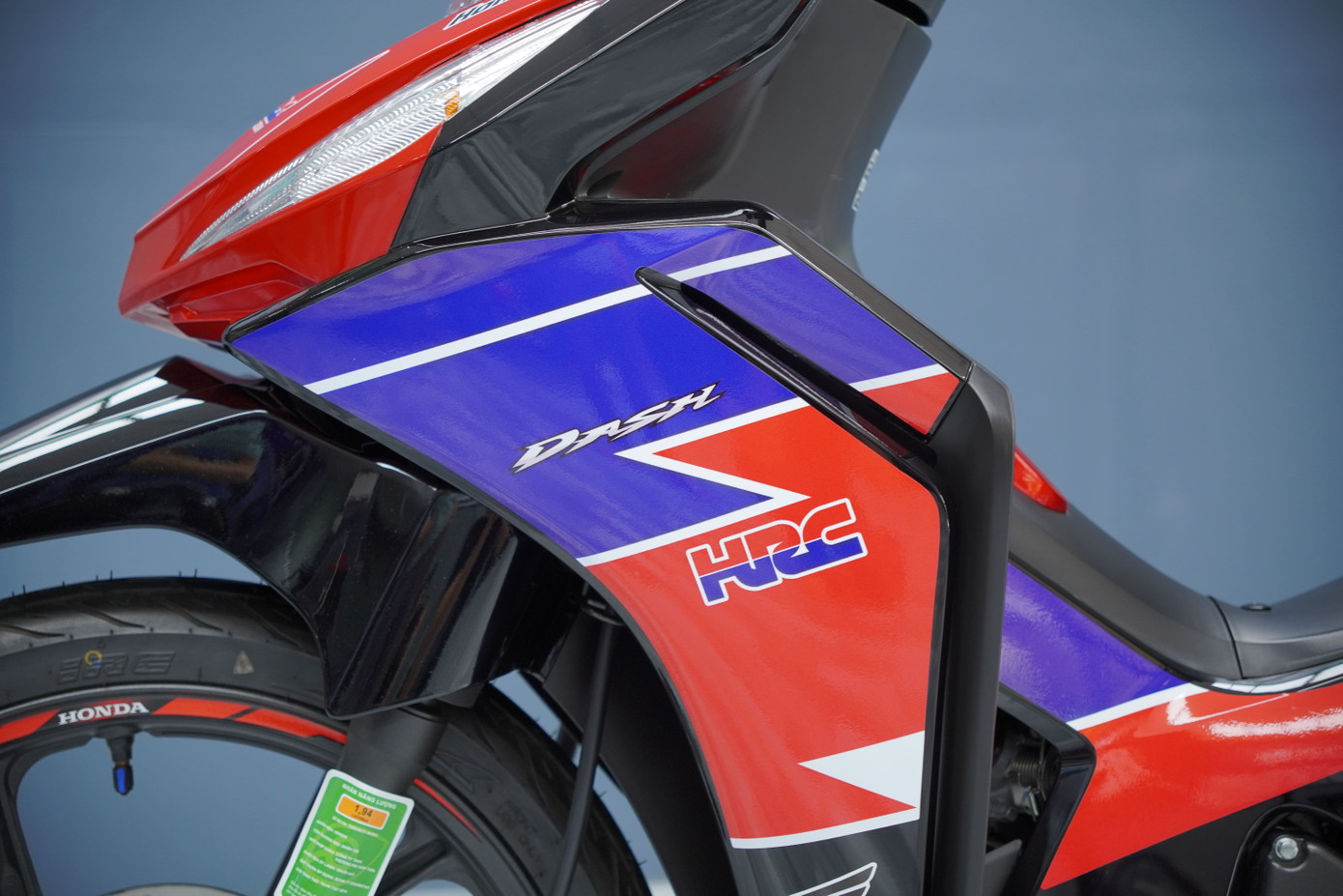Honda Dash HRC được trang bị mâm đúc đa chấu kích thước 17 inch, lốp IRC và hệ thống nhông, xích dẫn động xuất xứ từ Thái Lan. Ngoài ra, xe còn sở hữu bộ tem mâm phối màu đỏ đen bắt mắt.