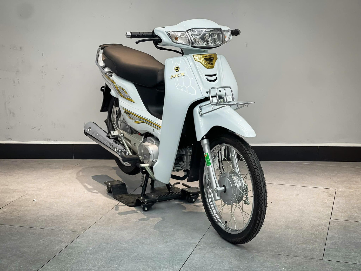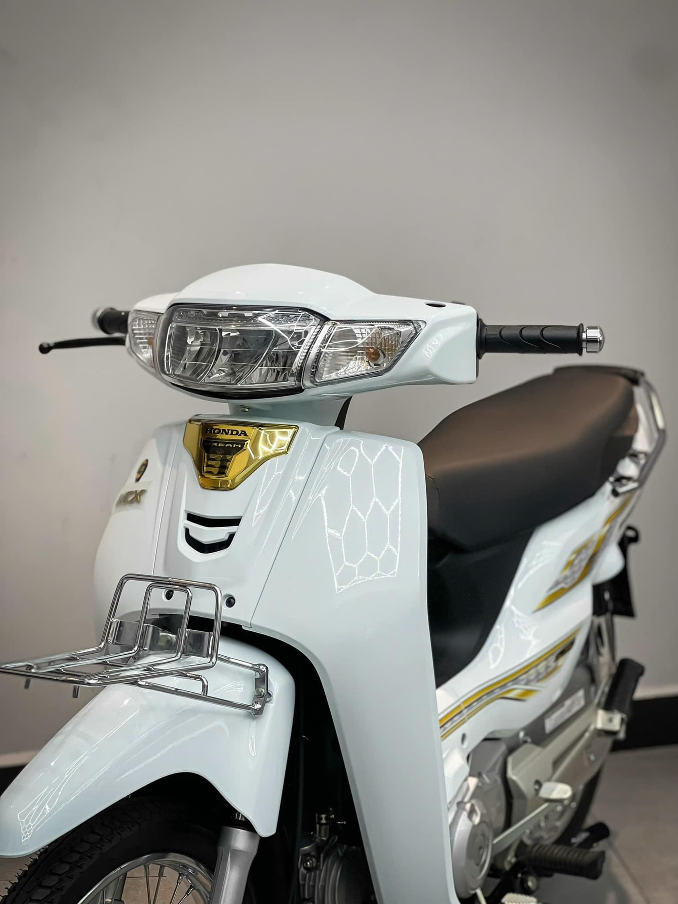 Về chiếc Dream 125 NCX được rao bán, bộ tem cho thấy xe thuộc phiên bản cũ đời 2023. Đầu xe có thiết kế vuông cổ điển đi kèm với huy hiệu màu vàng đặt giữa mặt nạ tạo điểm nhấn cho mặt trước.