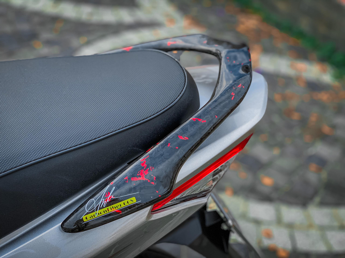 Ở phần vỏ, Tuấn đã rất biết cách tạo nên sự khác biệt nhờ việc gắn thêm những tấm carbon có màu sắc độc đáo. Với chi phí 4 triệu đồng, chúng vừa tăng tính thẩm mỹ mà lại còn bảo vệ thân xe tốt hơn.