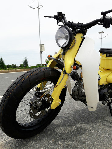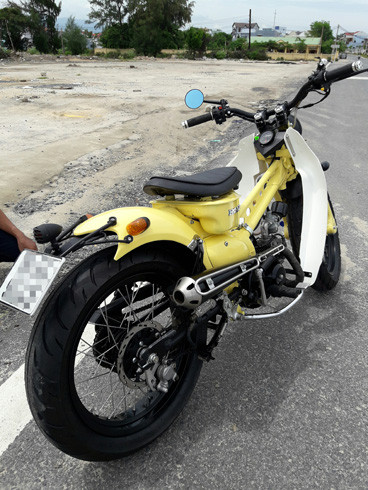 Để phù hợp với kích thước lốp lớn, dung tích động cơ nguyên bản 49 phân khối nâng lên 100 phân khối. Xe khởi động bằng cần đạp hoặc nút đề. Chủ nhân chiếc xe cho biết, chi phí để hoàn thành bản độ khoảng 25 triệu đồng. Thời gian thực hiện từ khâu lên ý tưởng đến khi hoàn thiện trong 30 ngày.