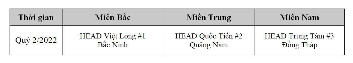 Tại miền Bắc, HEAD Việt Long #1 (Tỉnh Bắc Ninh) là HEAD có hoạt động LXAT tích cực nhất quý với 12 chương trình đào tạo. Tại miền Trung là HEAD Quốc Tiến #2 (tỉnh Quảng Nam) với 12 chương trình. Và tại miền Nam, xuất sắc nhất quý là HEAD Trung Tâm #3 (tỉnh Đồng Tháp) với 16 chương trình được triển khai.
