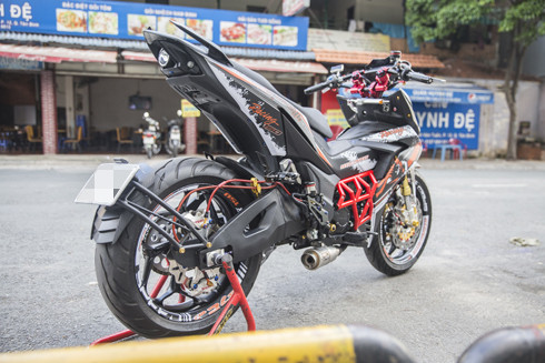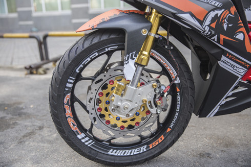 Bên cạnh Yamaha Exciter tạo dấu ấn với nhiều bản độ độc đáo, Honda Winner cũng dần cho thấy sức hút đối với giới trẻ đam mê độ xe. Một biker tại Sài Gòn mạnh tay chi số tiền lớn để "lột xác" Winner. Điểm nhấn trên bản độ ở gắp sau từ Yamaha R6, mâm xe 17 inch và lốp lớn kích thước 180/55. Phần đèn pha lẫn đèn hậu nguyên bản đều thay bằng dạng tròn và dán tem phản quang theo sở thích chủ nhân. Mất nửa tháng để hoàn thành các chi tiết trên xe. Kết cấu khung sườn vẫn giữ nguyên nhưng có thêm khung mắt cáo kiểu môtô đường trường để bảo vệ động cơ. Ống pô loại Pro Liner chế đút gầm. Bản độ sử dụng phuộc trước Ohlins dạng hành trình ngược, kẹp phanh đĩa đôi Brembo. Kích thước bánh trước 110/70-17. Phần đầu xe cũng thay đổi triệt để với tay nắm ngang, kèm trợ lực lái Ohlins, đồng hồ tốc độ LCD và đồng hồ đo vòng tua. Khởi động xe bằng nút đề bên phải ổ khóa và không còn chân đạp như trên nguyên bản. Bản độ còn nhiều đồ chơi đặc biệt khác. Riêng động cơ vẫn giữ nguyên, loại DOHC, xi-lanh đơn, dung tích 149,1 phân khối, công suất 15,4 mã lực, mô-men xoắn cực đại 13,5 Nm. Hộp số 6 cấp.