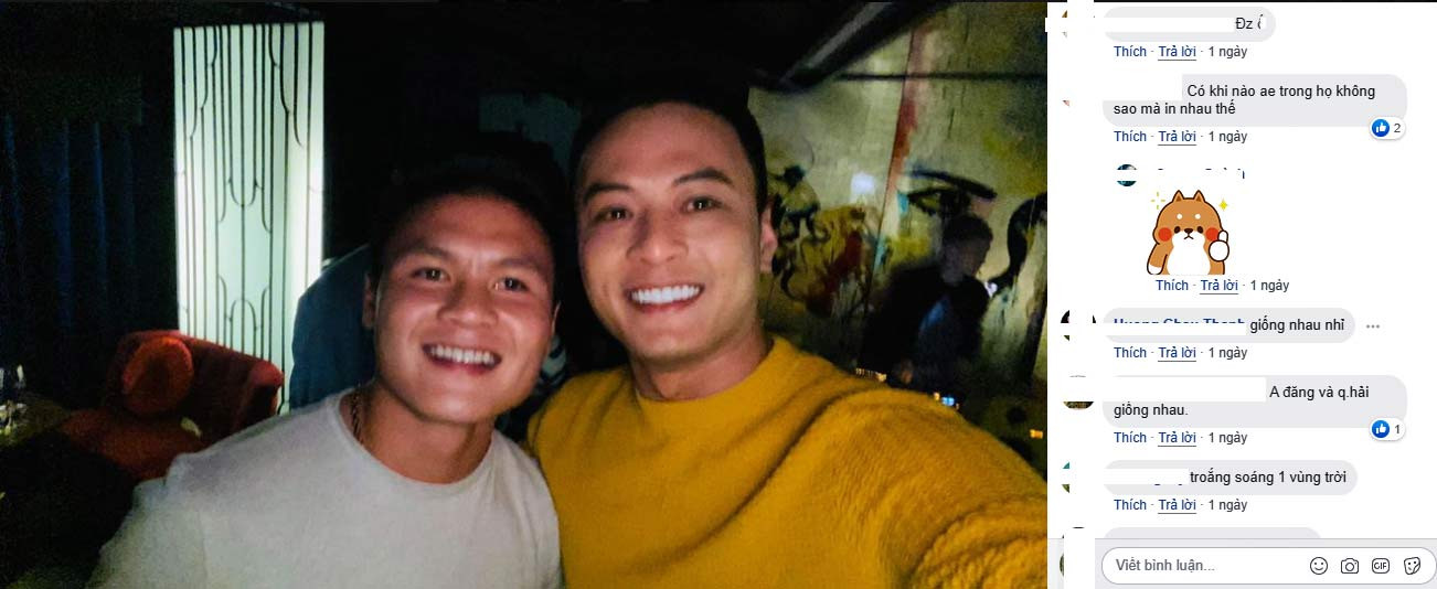 Đặc biệt, bức ảnh Hồng Đăng và Quang Hải chụp riêng, nhiều người cùng thắc mắc rằng không biết hai người này có quan hệ họ hàng hay không mà giống nhau như vậy. Theo đó, một số người bình luận: “Có khi nào anh em trong họ không sao mà in nhau thế”, “Nhìn anh Đăng với Hải thấy có nét giống nhau thế”, “Anh em ruột à”,…