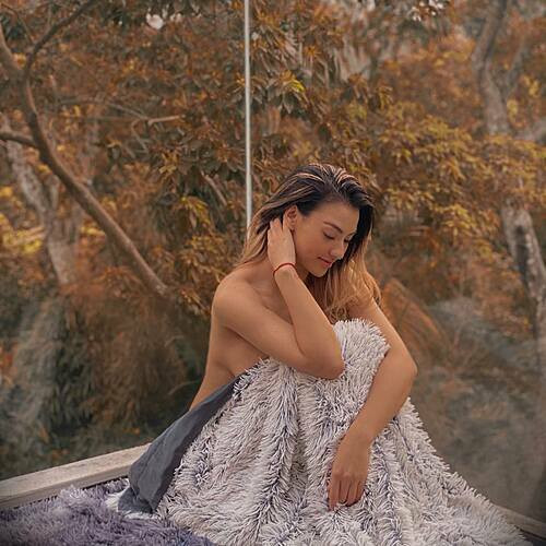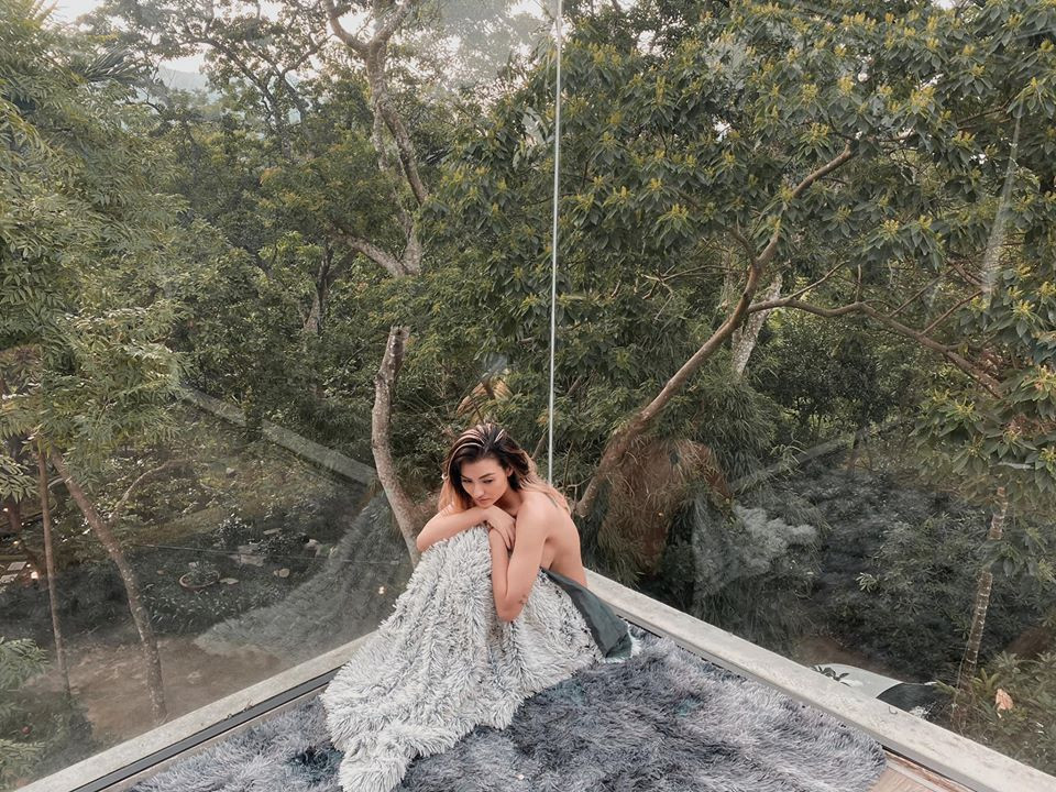 Mới đây, Hồng Quế liên tục đăng tải nhiều khoảnh khắc bạo trong chuyến du lịch Hòa Bình trên trang cá nhân. Theo đó, nữ người mẫu khỏa thân và dùng một tấm chăn che chắn những phần nhạy cảm, mặc dù vậy mọi người vẫn có thể thấy được vòng 1 đồ sộ của cô.