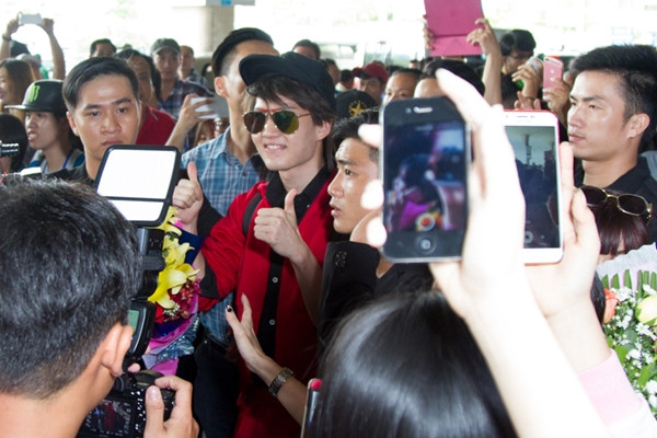 Sau khi đáp máy bay, trước sự chào đón nồng nhiệt của fan Việt, Nam diễn viên chia sẻ: "Tôi cảm kích trước tình cảm mọi người dành cho tôi. Tôi cũng muốn xin lỗi vì máy bay đến trễ nên để các bạn đợi khá lâu".