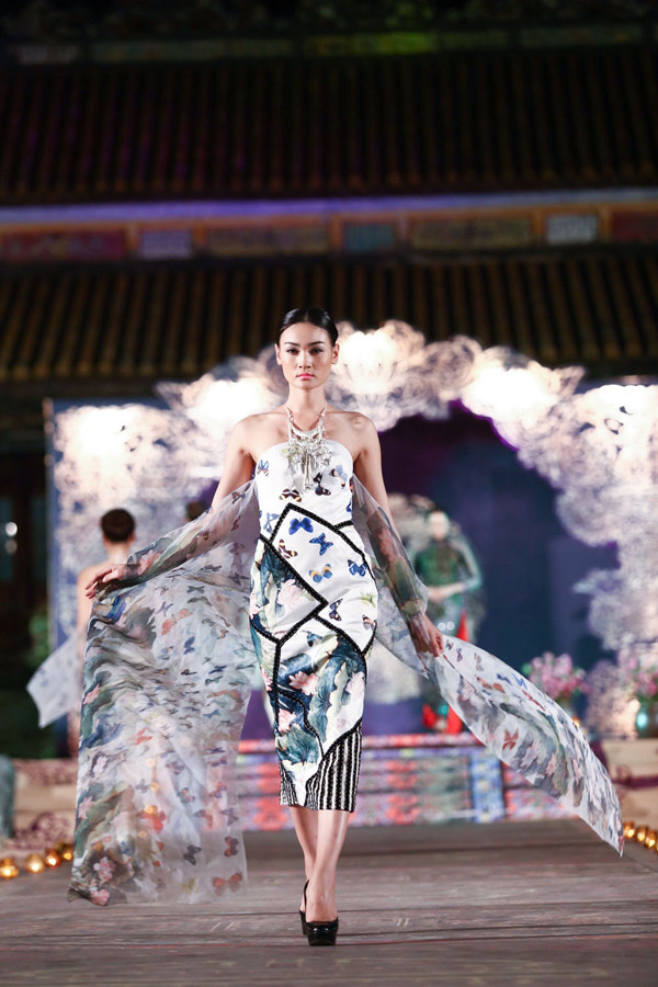 Rồng ,bướm và hoa sen là những cảm hứng chính trong BST lần này của NTK.