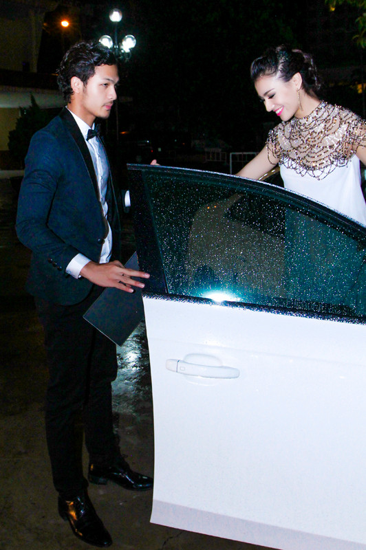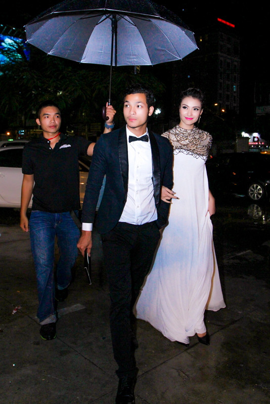 Tối 6/7, đích thân anh chàng người mẫu điển trai Vũ Tuấn Việt lái xe đưa người mẫu Hồng Quế đi dự tiệc thời trang.