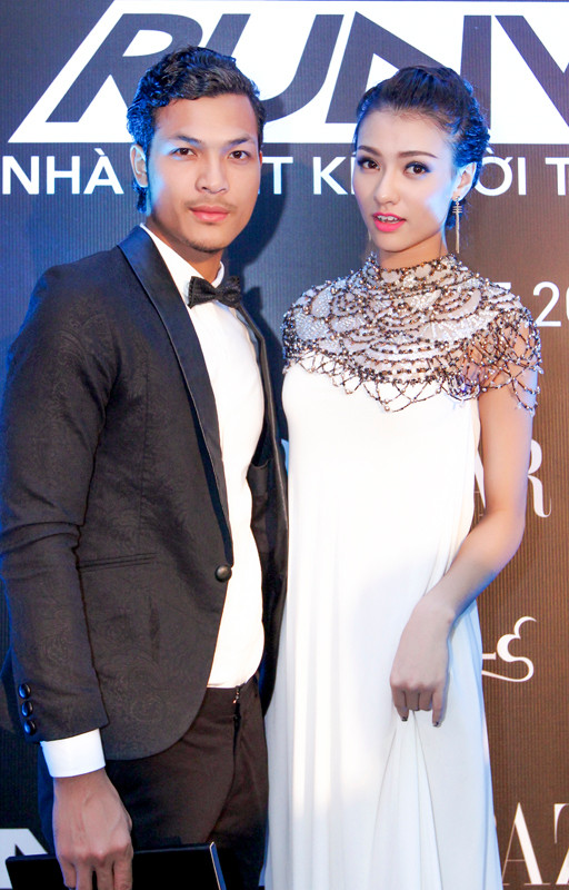 Hồng Quế cười rất rạng rỡ và không quên nắm chặt tay anh chàng á quân VN's Next Top Model 2013.