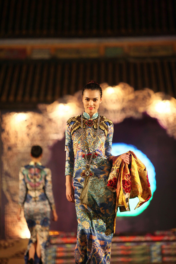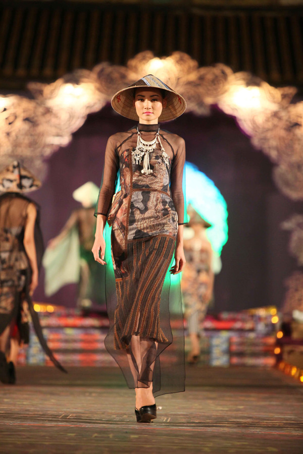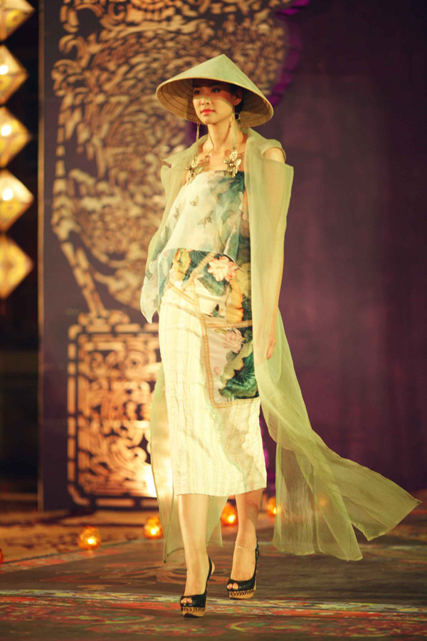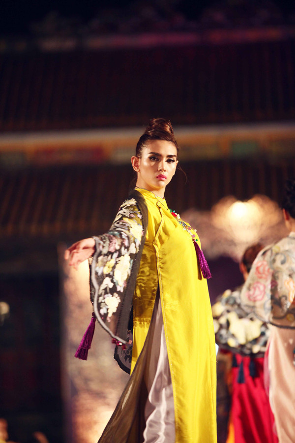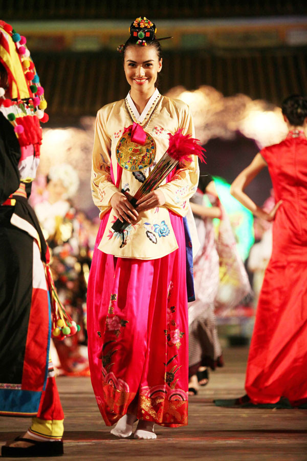 Cô trình diễn một mẫu trang phục khác, mang đậm các nét văn hóa đặc trưng của  châu Á.