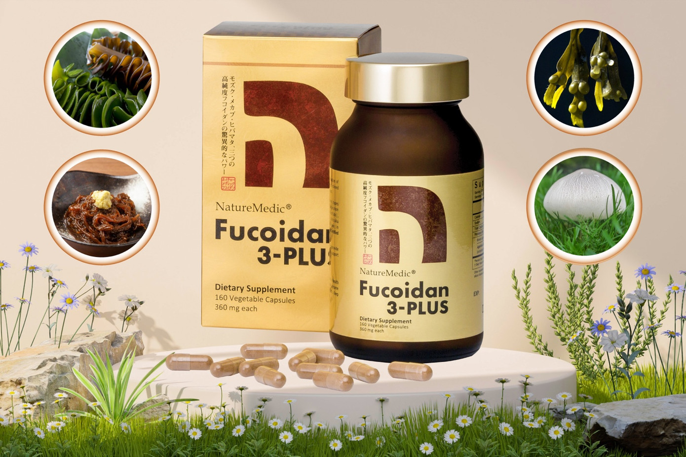 Fucoidan là hợp chất có trong các loại tảo nâu Nhật Bản nổi tiếng với nhiều công dụng tốt cho sức khỏe, hỗ trợ điều trị ung thư và tăng cường hệ miễn dịch. Đặc biệt, Fucoidan kết hợp cùng nấm Agaricus giúp sản sinh ra nhiều tế bào miễn dịch tự nhiên NK (Natural Killer) và nâng cao sự hoạt động của chúng.