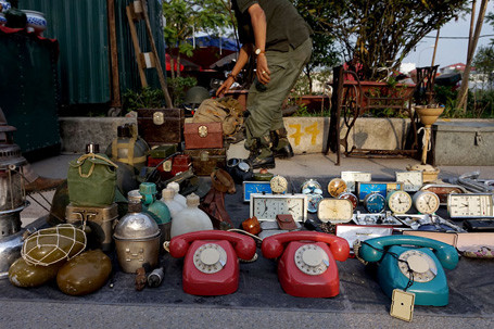 Những chiếc quạt điện Liên Xô (cũ), quạt con cóc do Việt Nam sản xuất thông dụng trong những năm thời bao cấp bày bán cùng nhiều đồ cũ.