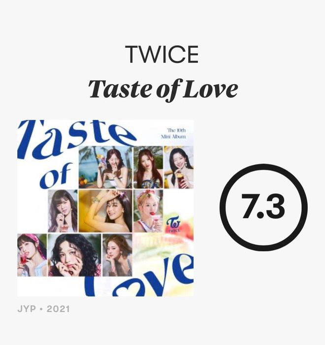 Âm nhạc của TWICE cũng nhận được điểm số khả quan từ các trang phê bình âm nhạc quốc tế như Pitchfork, Sputnik, Beats Per Minute... Điển hình như album Taste of Love được Pitchfork chấm 7,3 - đồng hạng với album 4 Walls của f(x) và Crush của 2NE1, trở thành album K-Pop có số điểm cao thứ nhì trên trang đánh giá này, chỉ sau album Seo Taiji and Boys của Seo Taiji and Boys (8,3).