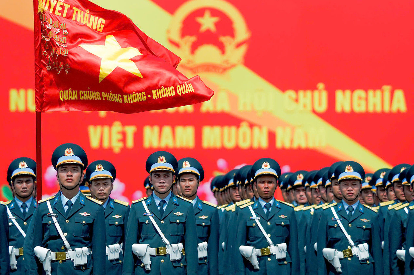 Điểm nhấn ấn tượng trong buổi hợp luyện là màn biểu diễn bay của các biên đội máy bay thuộc Quân chủng Phòng không - Không quân. 10 trực thăng Mi-8, Mi-17 bay rợp trời, mang theo đại kỳ Đảng, đại kỳ Tổ quốc. Ngoài ra, đội hình bay còn có sự tham gia của 6 máy bay huấn luyện Yak-130 và 7 tiêm kích Su-30MK2, thực hiện các đội hình chiến thuật phức tạp, thể hiện sức mạnh và sự hiện đại của Không quân Việt Nam.