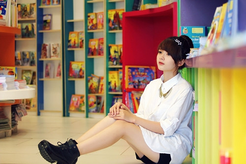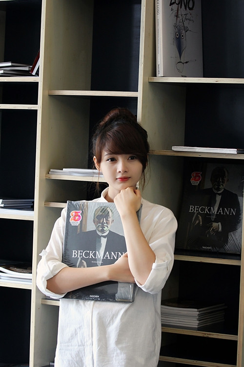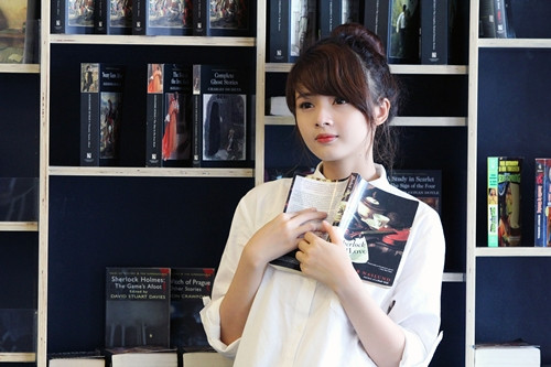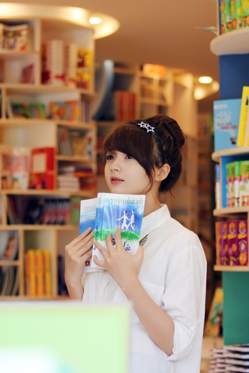 Gương mặt trong sáng của "hot girl" ảnh thẻ Lan Hương bên cuốn sách của nhà văn Nguyễn Nhật Ánh.