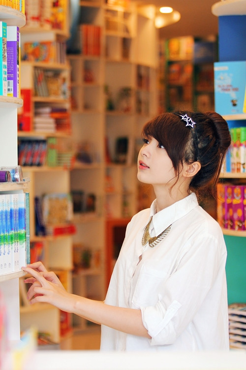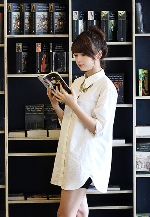 Lan Hương vừa thực hiện bộ ảnh đáng yêu với áo sơ mi, phối hợp với những phụ kiện đơn giản như vòng cổ, băng đô.