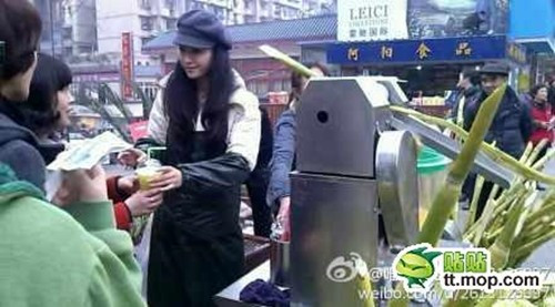 Trong dịp Tết Nguyên đán vừa qua, sự xuất hiện của cô gái xinh đẹp bán nước mía tại quảng trường Đông Phương, thành phố Tự Cống, tỉnh Tứ Xuyên nhanh chóng gây sự chú ý với cộng đồng cư dân mạng. Thậm chí, sau khi những hình ảnh của cô gái này được chia sẻ, nhiều người cố tình tới đây để xem xét, so sánh chân dung đời thực, tận mắt ngắm sự xinh đẹp của cô nàng.