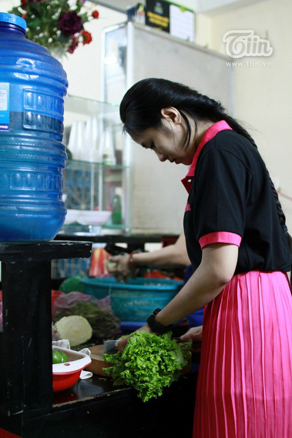 Cô Trinh tiếp tục là người trực tiếp hướng dẫn hot girl Đà Nẵng làm việc, do chưa bao giờ làm những việc này nên cô bạn tỏ ra khá lúng túng. Nhưng chỉ ít phút sau, Xíu Cool đã bắt nhịp được công việc, cô bạn phụ trách nấu nước, làm rau và lau nhà, dọn dẹp bàn ghế như một nhân viên thực thụ.