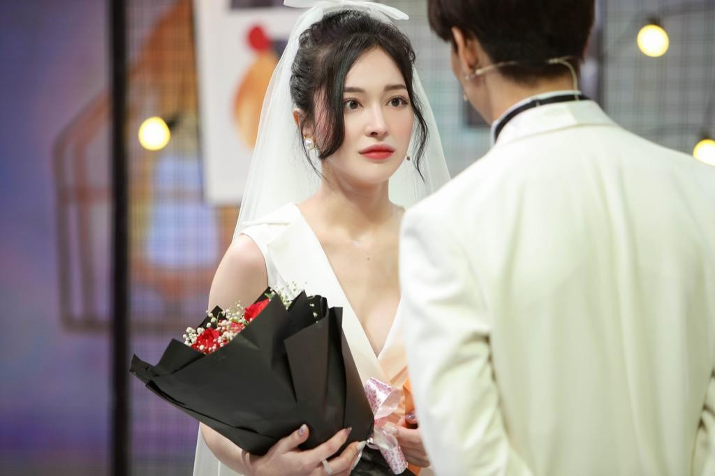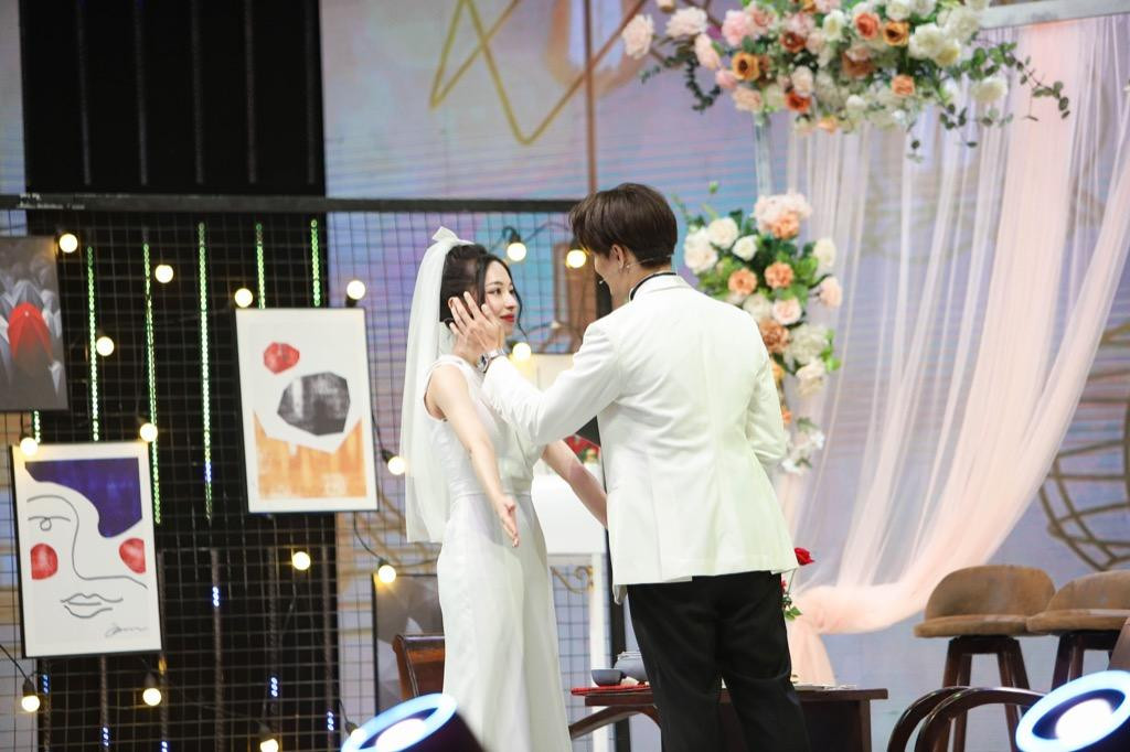 Duy Lê còn chuẩn bị cho Phi Linh một lễ cưới vô cùng lãng mạn. Anh đã tự tay may cho "crush" một bộ đầm cưới màu trắng tuyệt đẹp. Cả hai đã sánh đôi cùng nhau bước vào lễ đường trước sự chứng kiến của dàn khách mời và khán giả xem chương trình.