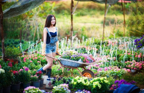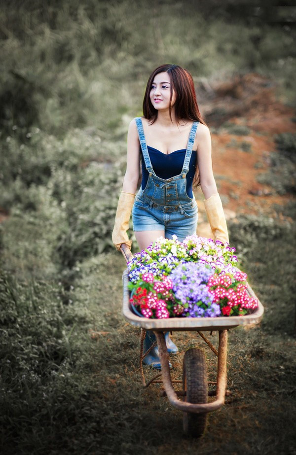 Sau clip, cuộc sống riêng tư và những điều thầm kín của hot girl phố núi nhanh chóng được hé lộ. Vy Lữ đã có gia đình và là mẹ của hai cậu con trai dễ thương. Trong bộ ảnh mới, Vy Lữ hóa thành một cô gái làm vườn. Hot girl phố núi khéo léo khoe đường cong cơ thể qua từng góc nhìn khác nhau.