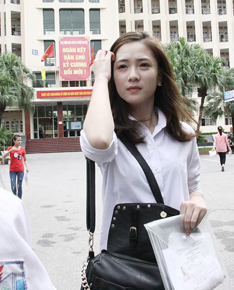 Gặp Trâm Anh tại cổng trường thi môn Địa lý sang nay, cô bạn cho biết rằng hiện đang thi vào khoa Quản lý nhà nước, HV Báo chí và tuyên truyền.