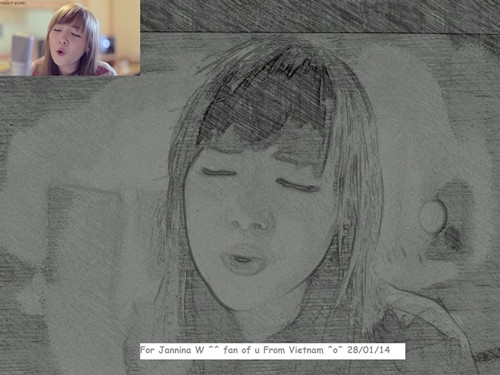 Một bức ảnh của một fan Việt Nam gửi tặng Jannina. Vừa qua, cô nàng 10X khiến cộng đồng teen Việt bấn loạn với bản cover Bèo dạt mây trôi tình cảm. Cô bạn cho biết đã phải mất đến 2 tháng để tập bài hát này.