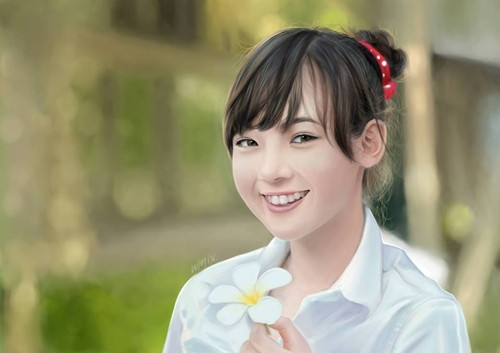 Những bức ảnh được fan cô nàng đầu tư công phu, nét vẽ chuyên nghiệp không khác là bao so với ảnh thật.