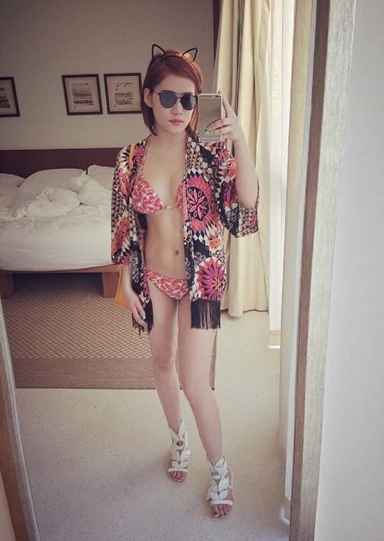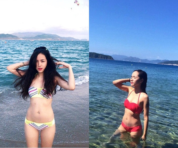 Em gái ca sĩ Phương Linh - Phương Ly cũng không ngần ngại khoe dáng giữa làn nước trong xanh.