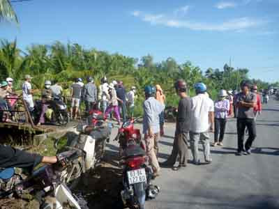 Vào sáng nay (18/11), khi đang tắm cho bò, một người dân sống ở ấp Tân Mỹ xã Tân Bình Thạnh, huyện Chợ Gạo, tỉnh Tiền Giang, hốt hoảng phát hiện thi thể một người đàn ông nổi lên trên kinh 879B nằm dọc theo đường tỉnh 879B.