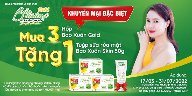 Nhằm tri tri ân những khách hàng đã tin dùng viên uống nội tiết tố nữ Bảo Xuân trong suốt 12 năm qua, từ ngày 17/03/2022 - 31/07/2022, Bảo Xuân triển khai chương trình khuyến mại đặc biệt: Khách hàng mua 3 hộp Bảo Xuân Gold có dán tem quà tặng sẽ được tặng ngay 1 tuýp Sữa rửa mặt Bảo Xuân Skin 50g