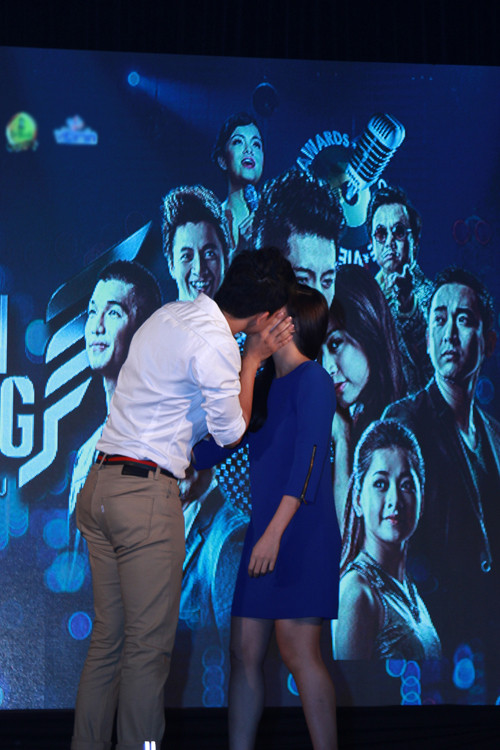 Đặc biệt, khi bị hỏi cảnh quay nào khó nhất, cả hai đã thẹn thùng chia sẻ là cảnh hôn nhau. Thế là các bạn sinh viên đã cùng đồng thanh hô to “Hôn đi, hôn đi, hôn đi” để Hoàng Thùy Linh và Harry Lu diễn lại cảnh này trên sân khấu.