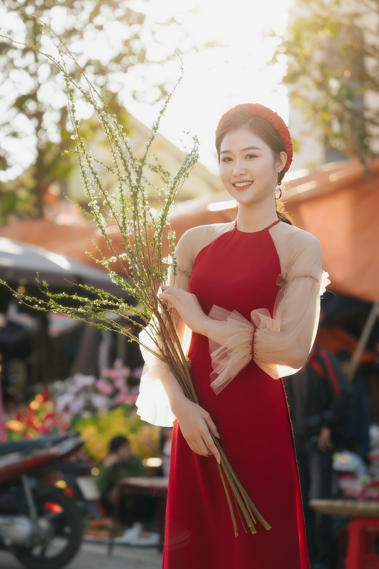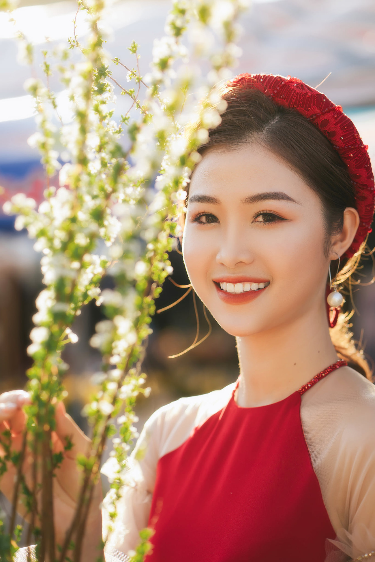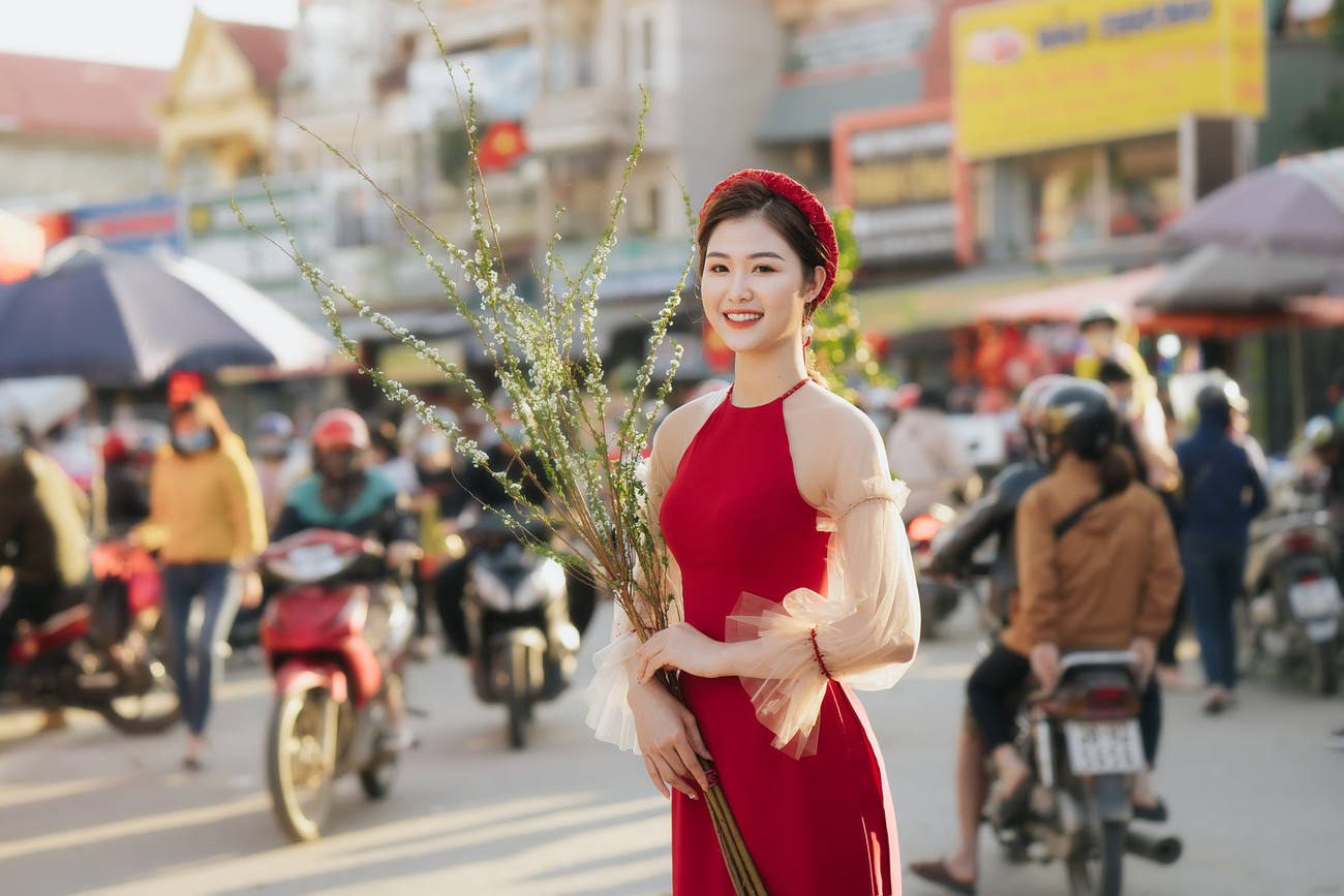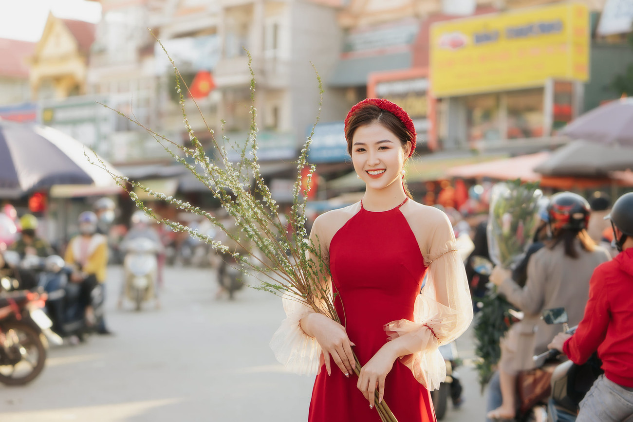 Trong bộ trang phục áo dài cách tân, người đẹp Trần Ngọc Bích khoe nhan sắc ngọt ngào tựa sương mai. Ngọc Bích từng lọt Top 25 Hoa hậu Việt Nam 2018.