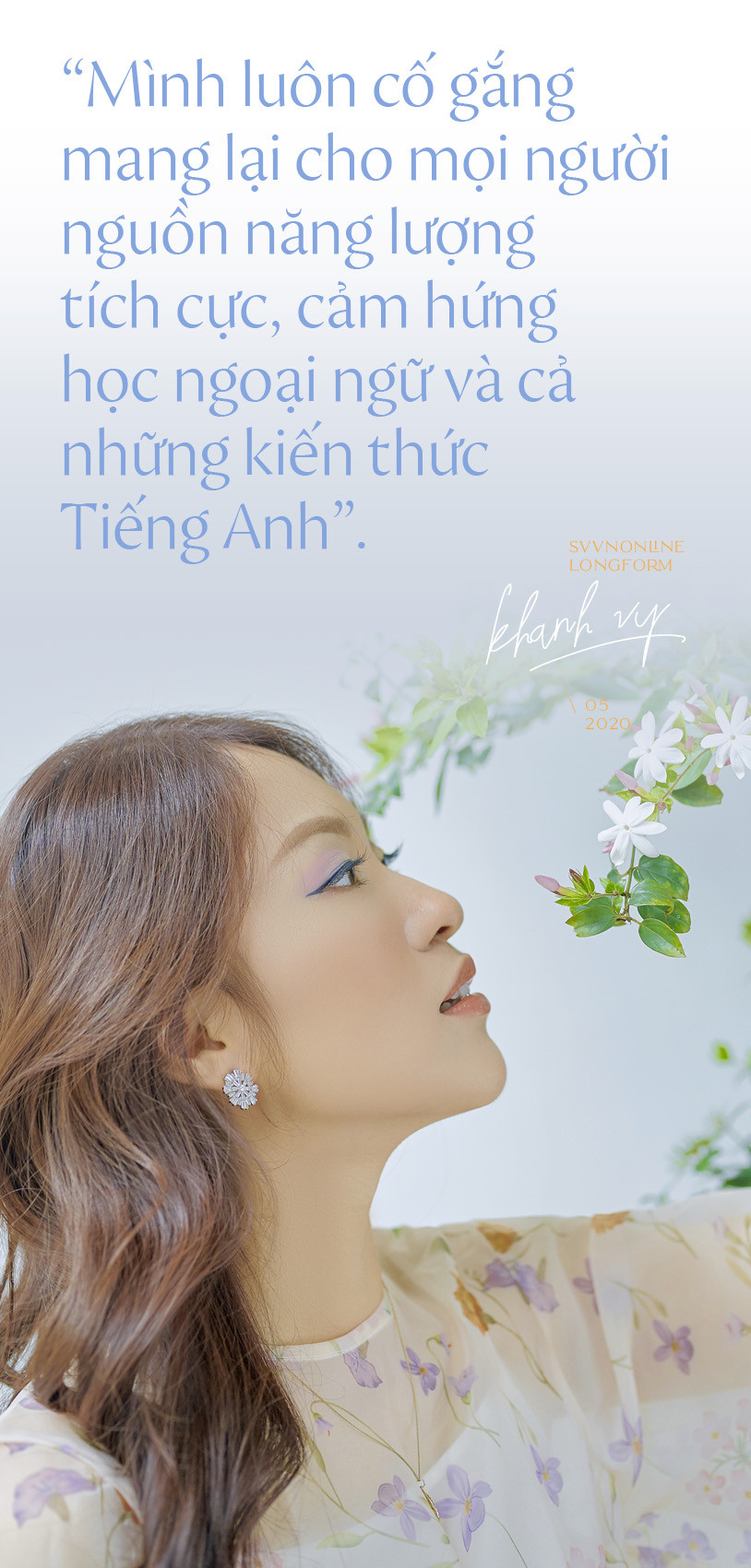 Nếu tìm một gương mặt trẻ trung, đầy năng lượng tích cực để làm hình mẫu cho giới trẻ, chắc chắn nhiều người sẽ nghĩ đến cô gái từng nổi đình đám với clip nhại 7 thứ tiếng - Khánh Vy. 4 năm từ lúc nổi tiếng đến bây giờ là cả một hành trình trưởng thành dài của Vy. Từ cô nữ sinh trường Chuyên Phan Bội Châu đến MC/Host trên VTV7, đại diện của nhiều thương hiệu, sở hữu kênh Youtube gần 1 triệu lượt đăng ký cùng một cộng đồng học Tiếng Anh đông đảo… Khánh Vy đang dần từng bước khẳng định chính mình. Một điều không thể phủ nhận chính là Tiếng Anh đã mang đến cho Khánh Vy quá nhiều thứ, cả vật chất, tiếng tăm đến những cơ hội mới.