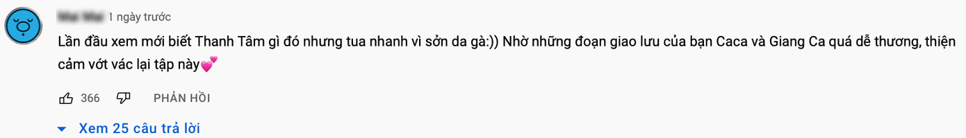Đáng chú ý, có đoạn MC Trường Giang hỏi Thanh Tâm rằng: "Năm nay bao nhiêu tuổi rồi con?", hotgirl "trứng rán" nũng nịu đáp: "Con 23 tuổi" khiến nhiều khán giả cảm thấy "nổi da gà". Một số dân mạng cho rằng Thanh Tâm không cần thiết "điệu quá đà" hay "làm quá" khi tham gia gameshow truyền hình.