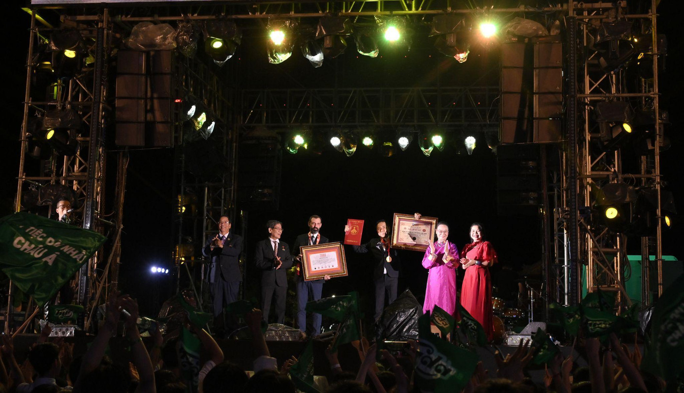 Điểm nhấn chính của sự kiện là buổi lễ đón bằng chứng nhận kỷ lục “Bàn tiệc dài nhất châu Á” dưới sự chứng kiến của hơn 10.000 người con miền Trung diễn ra vào tối cùng ngày.